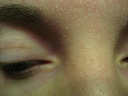 Hier siehts nochmal so aus wie an der Stirn, ist aber mehr die Schläfe, seitlich der Augenbraue.