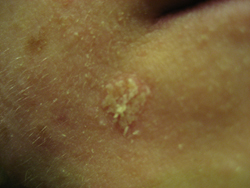 Das Blöde ist halt, dass mein Hautarzt sich das aus 3 Meter Entfernung angesehen hat und damit natürlich das an der Stirn gar nicht gesehen hat