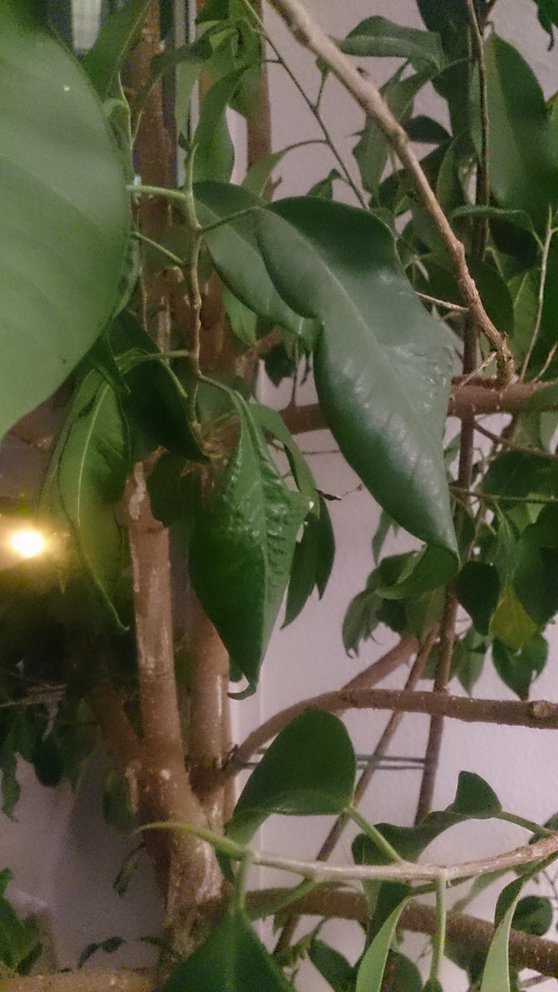 So, hier mal Bilder. Ja, zumindest die Schefflera stand den Sommer über auf dem Balkon. Die Ecke jetzt ist die Hellste im ganzen Wohnzimmer. Den Ficus habe ich erst seit ca. 4 Monaten. Teilweise hat er richtige Rostflecken und die Blätter kringeln sich richtig schlimm.