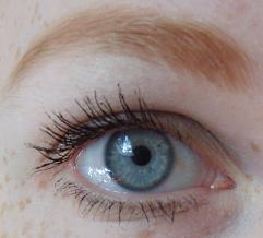 Außerdem noch ein Bild von meinem Auge mit getuschten Wimpern - es ist nicht ideal, weil etwas verwackelt und außerdem zu gut ausgeleuchtet, aber für den ungefähren Eindruck halt.