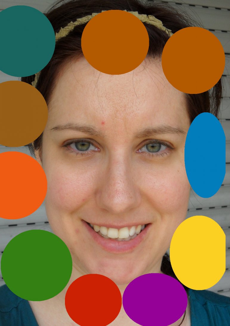 Und doch hat man das Gefühl, es könnten noch ein wenig Kräftigere Farben hin, denn das rosa unbd blau gefallen mir jetzt nicht so an ihr. Das Grün oben rechts ist am schönsten zu ihren Augen, dann das Orange und das Braun. vielleicht müsste man noch die Warm Autumn Farben hindrappen zum vergleich?