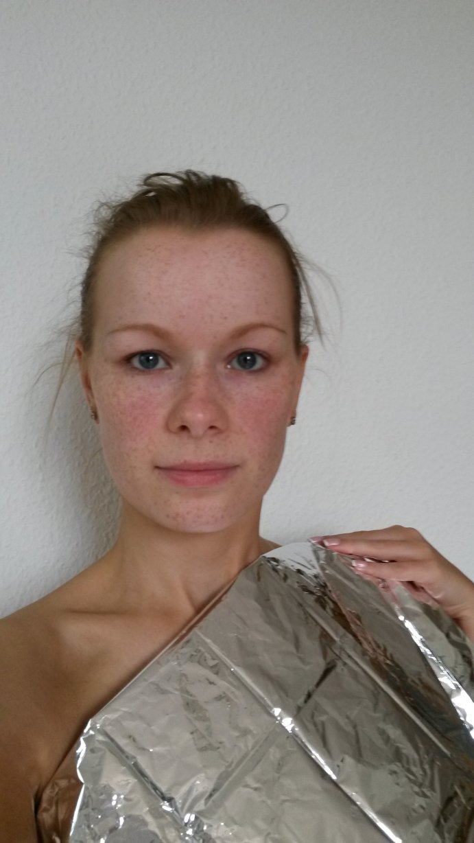 Wohne in einer kleinen Dachwohnung ohne Gardinen. ;) Und meine Einrichtung ist sonst schwarz, weiß und Lila als Akzent. Ich könnte max. zu einer Freundin, aber das ginge nun nicht gleich heute und morgen. Ich merke auch, die Lichtverhältnisse sind wohl nicht so optimal. Nachher hab ich Friseurtermin und wollte die Haare in Dunkelblond mit hellblonden Highlights färben lassen. 12:00 Uhr ist Termin.