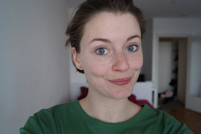 Ich bin nicht geschminkt, hab mich kurz vor den Fotos abgeschminkt, vielleicht ist da noch was an den Augen zu sehen!