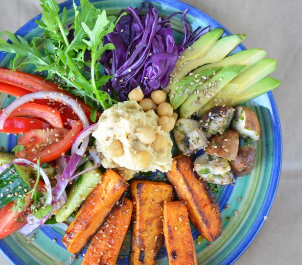 großer gemischter Salat mit Putenbruststreifen und Baquette