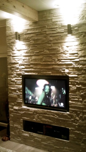 Hi! Du kannst eine Wand zum Teil mit Dekosteinen verkleiden und das Fernseher aufhänden - ich habe z.B. bei mir das ganze so gemacht: Die Verblendsteine kannst du *werbung entfernt* günstig vom Hersteller besorgen - sag aber dass es um eine Testbestellung geht, sonnst verkaufen die es nicht... :(