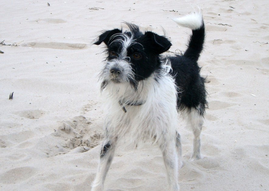 Sporty, meine Hündin wird nächsten Monat 10 und ist ein Mischling zwischen Parson Russel und Schnauzer. Normalerweise könnte sie noch 7-8 Jahre leben. Alle halten sie für deutlich jünger, weil sie sonst sehr fit und munter ist.Das ist sie: