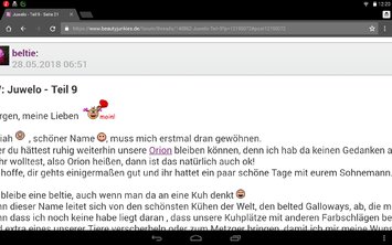 Danke beltje, nun bin ich über den kommenden Nachwuchs "aufgeklärt". Habt Ihr auch noch Pferde? Ich frage weil ich es auf Deinem Profil gelesen hatte. Ja und klar sind wir hier im Jul-Faden. Doch wenn Jul so langweilig ist, dann sind wir ja quasi gezwungen