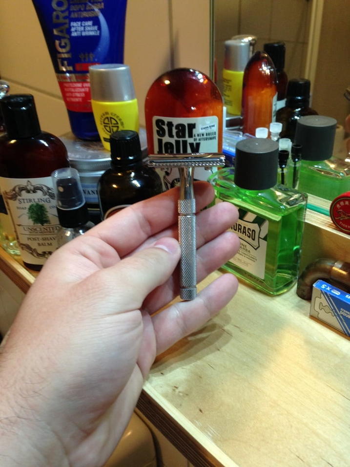 Ich lese hier schon einige Zeit mit, was mich dazu inspirierte die alten Rasierutensilien herauszukramen und zum Einsatz zu bringen. Unter anderem habe ich einen verstellbaren Rasierhobel gefunden, der dem River Lake RZ700 sehr ähnlich sieht.