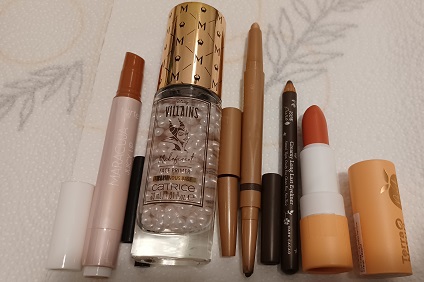 9 Mascara, 1 Wimpernprimer, 1 Kohlstift schwarz, 1 Kohleyeliner braun,