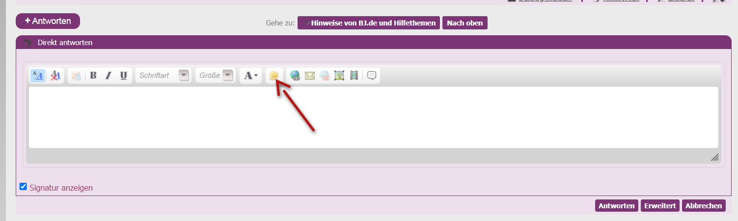 Die Befehle, um Smileys hier bei den BJ zu schreiben, findet man hier:
