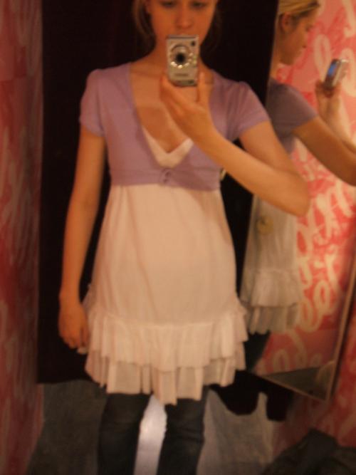 Mmhh...das Problem ist, dass das weiße Kleid trotz Größe S oben nicht saß. Es wurde vom lilafarbenen Oberteil verdeckt.