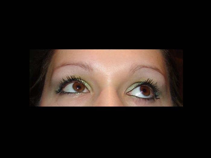 - Über den Wimpernkranz Lidstrich mit Kajal ziehen und mit dünnem Pinsel verwischen. Am unteren ebenfalls. Nicht bis ganz innen sondern oben etwa bis zur Hälfte unten das äussere Drittel. Schön verwischen, dass es nicht gemalt aussieht sonder nur dichte Wimpern simuliert