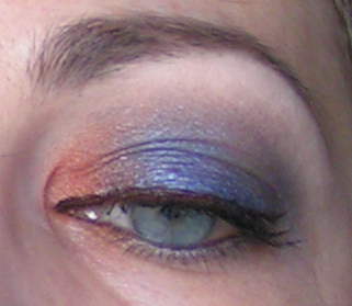 Chinda-Chan: ich find das orange/kupfer-ige ziemlich auffällig, aber insgesamt ist es ein schönes AMU, und du kannst das gut tragen. Ich würds noch schöner finden, wenn die kupferige Farbe am Oberlid weiter nach außen gehen würde, mindestens bis zu Mitte.