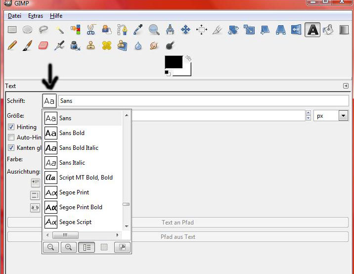 21. Um nun noch Text einzufügen, geht auf das Fenster "GIMP". Klickt dort auf das dicke, schwarze A.