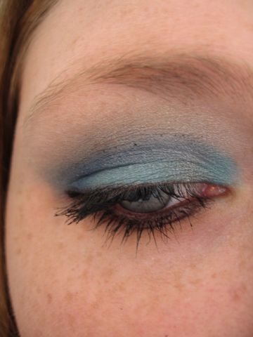 Türkis und Lila aus der Zoeva-Palette und um das Türkis zu schwächen nochmal MAC Arctic Grey darüber.
