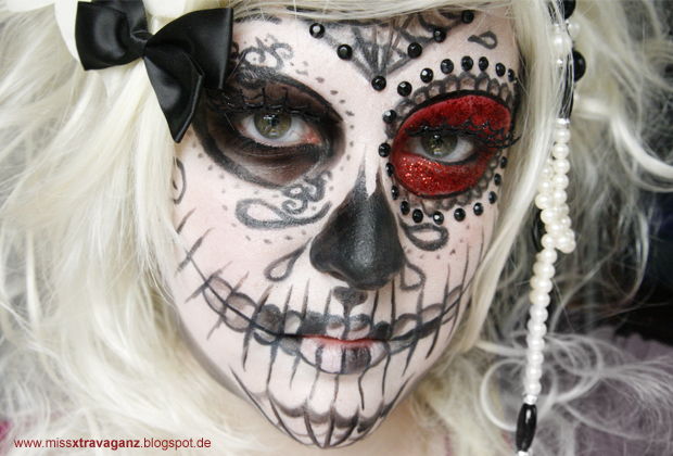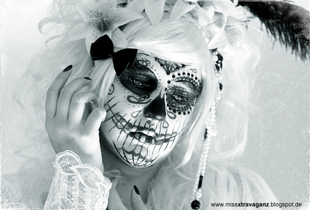 Bei mir geht Halloween in den dritten Tag und da habe ich wie unsere tolle mvx ebenfalls einen Sugar Skull geschminkt!