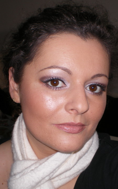 So ein gewissen Leuchten haben die Farben auf meinem Bildschirm durchaus, aber selbst wenn es so zart bleiben soll würde ich noch ein wenig dunkel in der Lidfalte verwenden, dann wirkt es imo noch plastischer und hübscher.