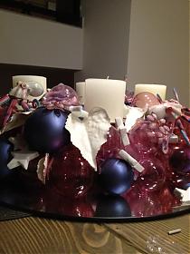 In Ermangelung einer Heißklebepistole ist hier der Kranz von der besseren Seite. An der anderen Seite fehlt derzeit eine Kugel, das ist ein ganz empfindliches Teilchen… Naja, wie man sieht nicht der klassische Adventskranz, aber es war damals Liebe auf den ersten Blick… Habe ihn nicht selbst gemacht sondern ihn nach langem Überlegen für viel Geld gekauft. Deswegen muss er jetzt noch viele Jahre halten und bekommt immer nur neue Kerzen.