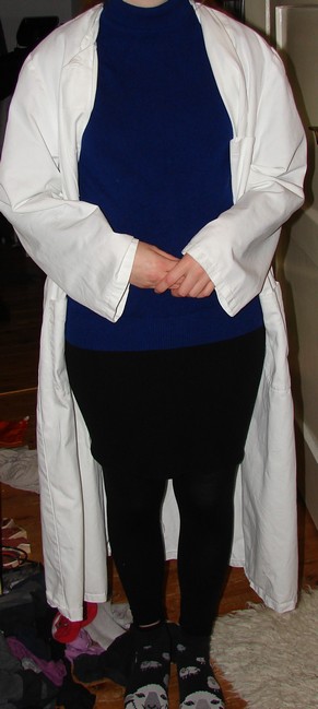 Ich bin nicht völlig ahnungslos, tue aber jetzt mal so: Was ist das Problem? Wieso sieht der Oberkörper so lang aus und die Beine so stumpig?? (Den Langen Mantel bitte ignorieren, ist ein Laborkittel, war Anprobe für ne Mottoparty) Tipps? Und: Was mache ich mit diesen Minirock?