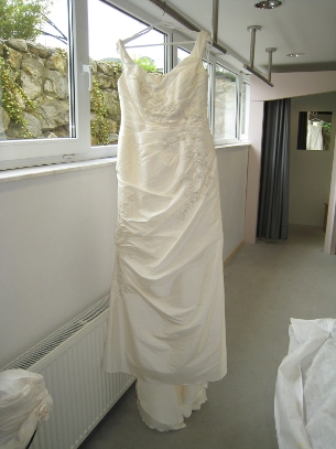 aber ohne Schleier. Diese Neckholder hab ich zu Trägern ändern lassen, also einfache Spaghettiträger.
