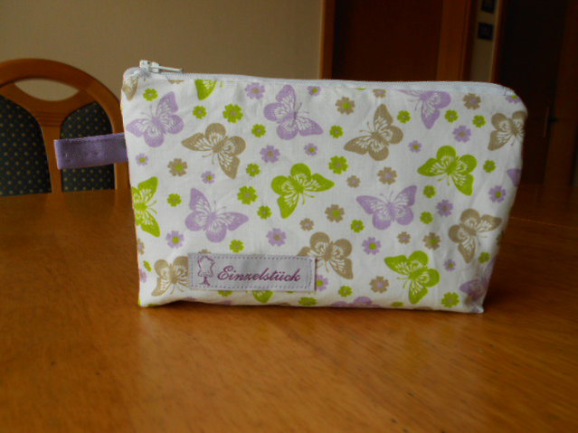 Obwohl hier schon so viele tolle Sachen vorgestellt wurden, an die meine bescheidenen Nähanfängerobjekte keinesfalls rankönnen traue ich mich mal, mein heute genähtes Kosmetiktäschchen zu zeigen: