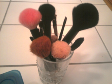 Meine Sammlung kann zwar nicht mit der von Rouge mithalten, hier ist sie aber dennoch.Leider nur Handyqualität... und die Pinsel sind teilweise benutzt und noch nicht gewaschen.