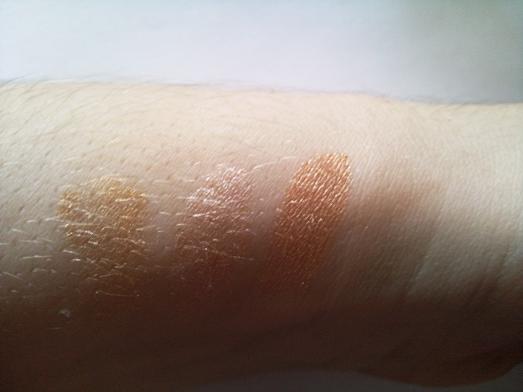 Hm, ich glaube das wäre nichts für mich. Ich kann nur für mich sprechen, aber für mich sollte ein Highlighter möglichst farblos sein, wenn überhaupt eine Nuance heller als die Hautfarbe, keinesfalls dunkler. Sie sollen ja bestimmte Partien "aufhellen". Deine Swatches sind definitiv dunkler als Deine Hautfarbe. Wäre somit für mich eher ein (wirklich schöner) Schimmer-Lidschatten oder Schimmer-Rouge - jedoch kein Highlighter im klassischen Sinne. Vielleicht definieren wir Highlighter aber auch gerade anders.