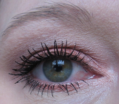 MAC Club für die Crease + nen Ticken schwarz + ein Hauch MAC Creme de Violet, Lidmitte MAC Creme de Violet und Innenwinkel hab ich einfach mein Manhatten Soft Compact Powder (mein Brulé-Ersatz) genommen. Highlighter so ein pfirsichfarbener aus der der NYX green eyes.