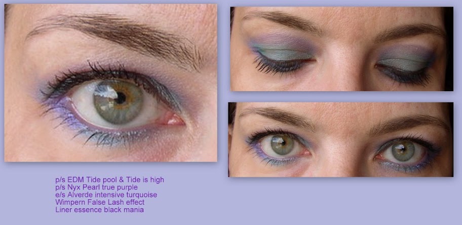 Lidstrich: CS geleyeliner Stellar, drüber der lila Kajal aus der Essence CAC-LE.