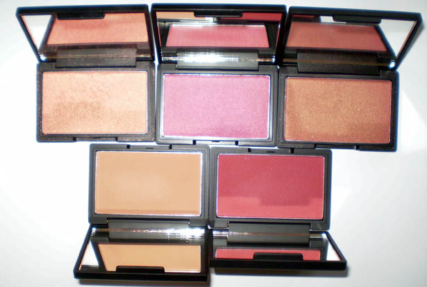 Blushes im Uhrzeigersinn von oben links: Rose Gold, Pomegranate, Sunrise, Flushed und Suede.